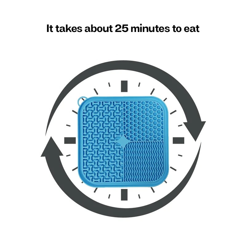 Mode d'emploi : Étalez une fine couche d'aliment adapté (yaourt, beurre de cacahuète ou pâtée, par exemple) sur la surface. Placez le tapis sur une surface plane et laissez votre animal se lécher tranquillement.